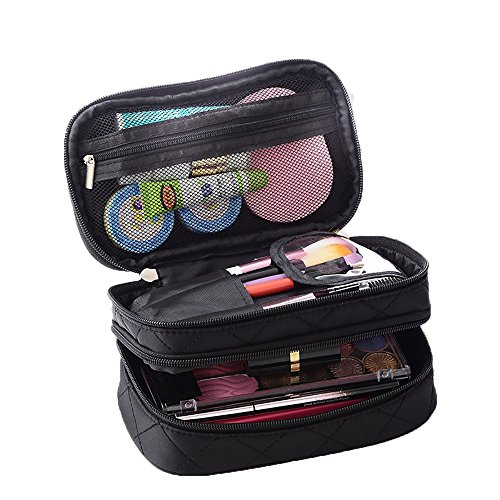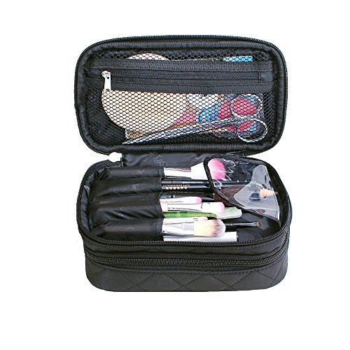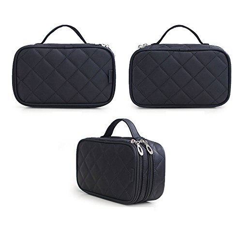 Lemoncy Travel Makeup Bag Case Portable Makeup Brush Bag Cosmetic Organizer Portable 2 layer Makeup Pouch Holder Premium Makeup Storage Bag with...