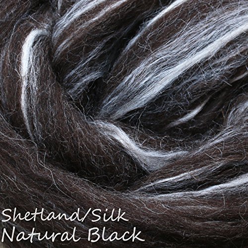 SHETLAND WOOL TUSSAH SILK Combed Top Roving for Spinning, Felting, Blending. Soft & Lofty Fiber Blend, Natural Black