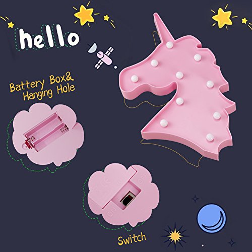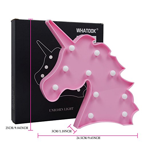 Part Number:EF Item Weight:8.2 ounces Product Dimensions:9.7 x 1.2 x 9.8 inches Color:Unicorn Head Pink Style:Modern Material:Plastic Power Source:battery-powered Voltage:3 volts Wattage:1 watts Type of Bulb:LED Special Features:Battery Power Usage:Indoor use only Included Components:Bulb included Batteries Included?:No Batteries Required?:No Battery Cell Type:Alkaline Shipping Weight:9.6 ounces (View shipping rates and policies)