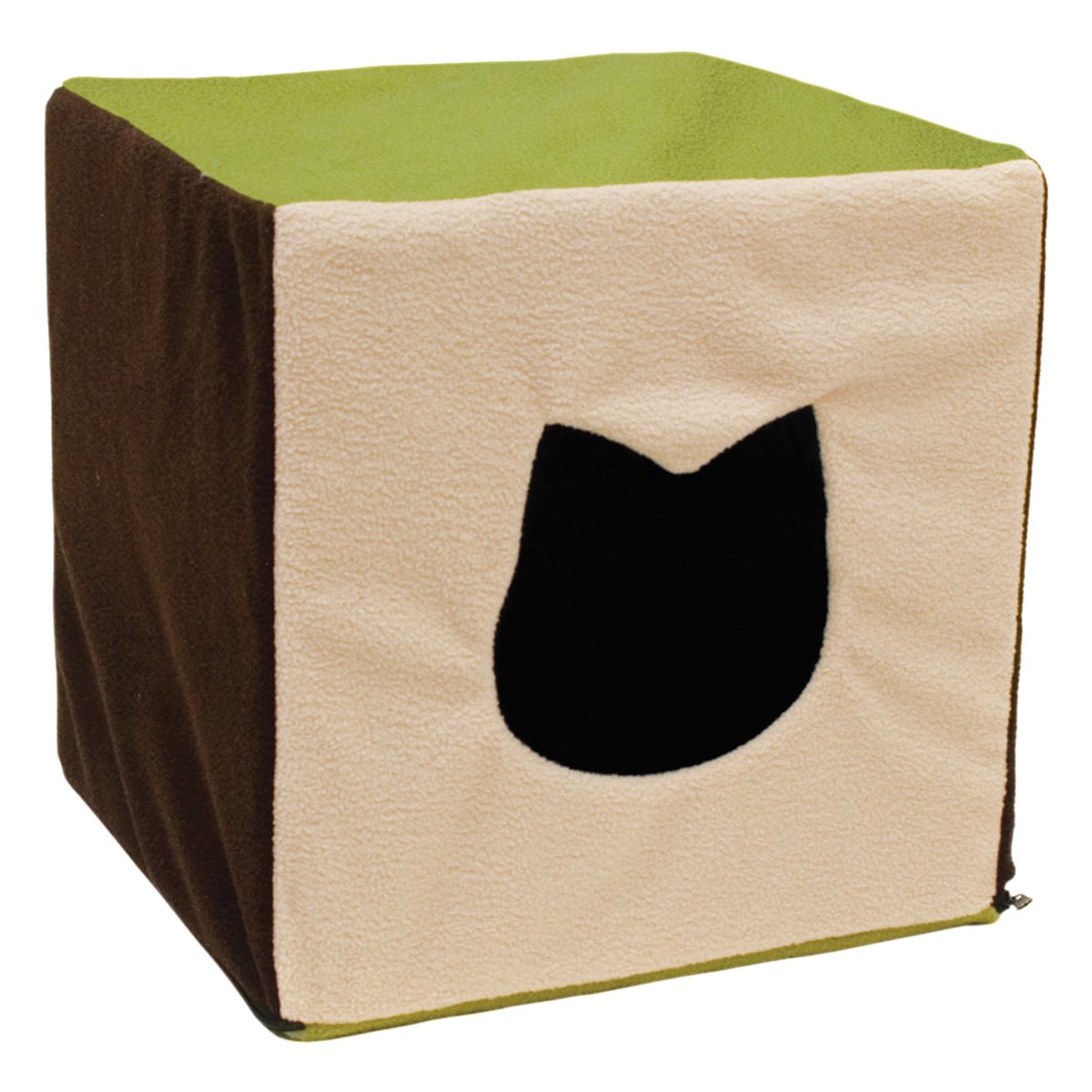 This cozy and comfortable kitty condo provides a snug gly hideout for your favorite kitty. Soft polar fleece design with sturdy tubular framing is easy to assemble. Convenient cover zips off for washing. Cute cat shaped opening for kitty's grand entrance.