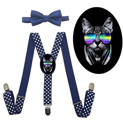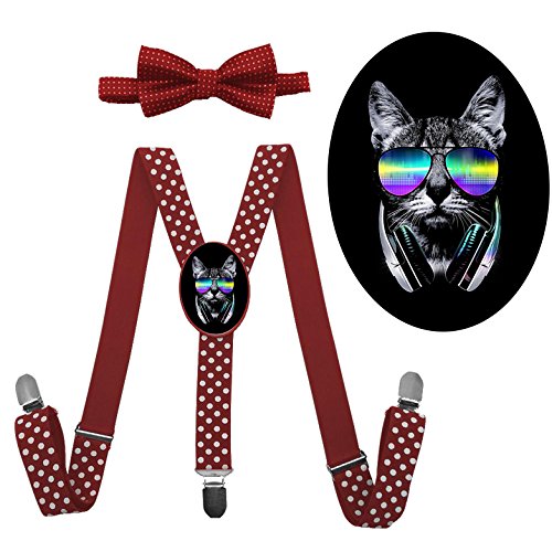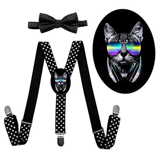 (QZ-Lee)/Accessories/Suspenders Cummerbunds/DIRECT FROM USA/QZ-Lee Cool Cat Y-back Adjustable Suspender With Bow Tie For Unisex