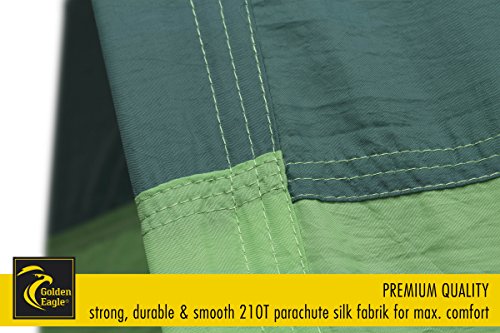 FEEL SAFE - TOP QUALITY - Triple interlocking stitching, maximum load 440 lbs/200 kg, mildew resistent, easy to wash, ISO 9001 certified, 2 YEAR WARRANTY. Customers consider our hammocks to be of ENO quality at a much better price.
