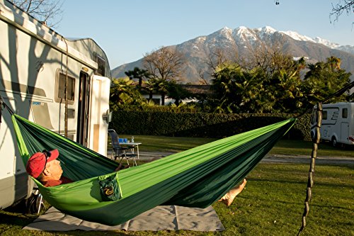 ULTIMATE COMFORT & LIGHTWEIGT- softer & stronger than most hammocks - feel the soft silky touch and the breathable strong parachute 210T nylon. IDEAL FOR HIKERS, TRAVELERS AND KIDS. 108 * 55 in / 2750 * 145 cm. Weighs only 1.0 lbs / 430 g (without straps).