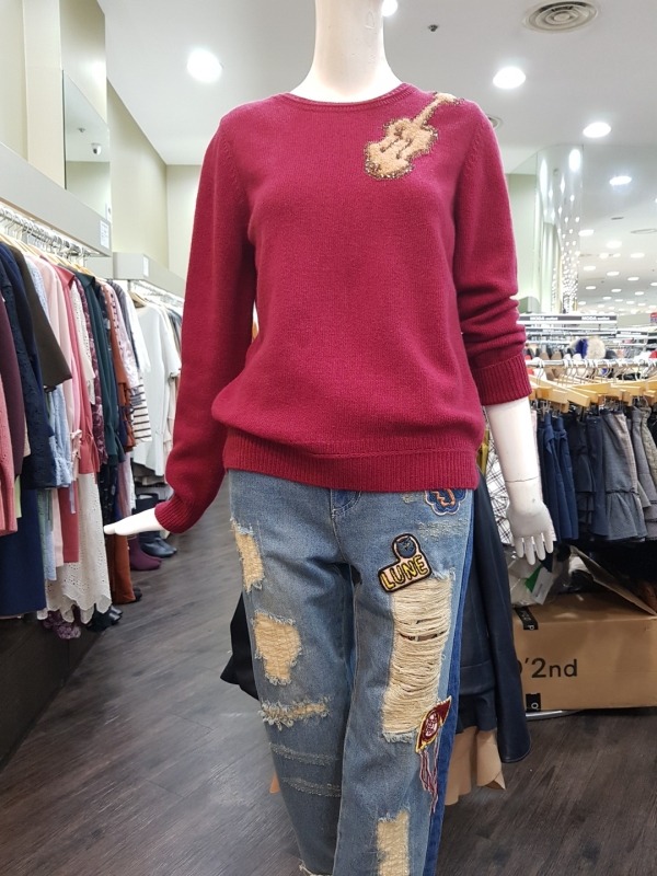 한쪽의 비즈장식으로 포인트를 준 니트입니다.