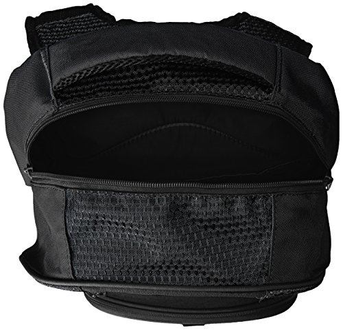 Xl organized capacity, padded contour straps, gear hanger, water bottle pockets, coated base panels, double zip side pockets, laptop sleeve, internal organizer, ball pocket