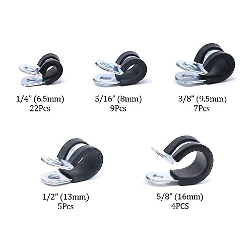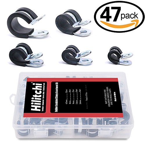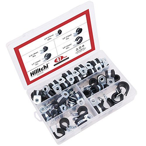 Hilitchi 47-Pcs Zinc Plated Steel Rubber Insulated Clamp Assortment Kit - 1/4 ~ 5/8 inch (6.5mm - 16mm)