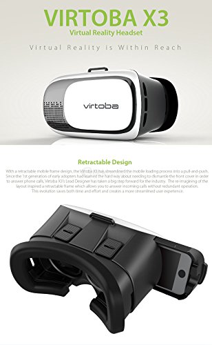 -. Feature : Retractable Design: With a retractable mobile frame design, the Virtoba X3 has streamlined the mobile loading process into a pull-and-push / Heat Dissipation: Apart from the cabinet cover's sliding design, the multi-vent shell also facilitates the dissipation of heat. This allows the device to extend its lifespan as well as providing additional comfort to the wearer for both short and long-term usage. / Earphone Jack: Are you feeling anxious about a possible compromise in the auditory experience? Rest easy audiophiles! Ideally placed bullet holes added to both sides of the Virtoba X3 function as the earphone jack depending on user preference. Just plug in your earphone into either of the ports available and you are ready to go! Escape from the hustle and bustle, immerse yourself in a P.R.Ivate 3D virtual reality dreamscape. / IPD & Focus Adjustment: IPD and Focus can be adjusted to adapt to your eyes. IPD adjustment function enables the distance between the lenses to correctly match every user's interpupillary distance (the distance between the centers of the pupils in both eyes) to have extended range. / Adjustable Head Strap | Space reserved for myopia glasses | Compatible with 4.7in - 6in Mobiles