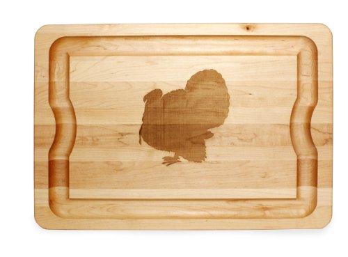 J.K. Adams Maple Wood Barbeque Cutting Board with Laser Engraved Turkey Design, 20-inches by 14-inches