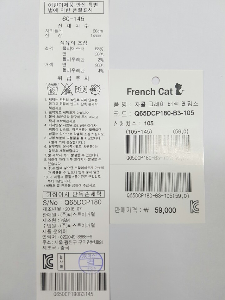 소재-폴리에스터 68% 면 30% ?폴리우레탄 2%