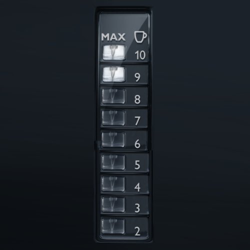 -. Feature : Doppelte Bohnenbehälter und integriertes Mahlwerk: Auf der Oberseite des Gerätes befinden sich zwei Bohnenbehälter für die Auswahl zwischen oder die Mischung von 2 Bohnensorten. Der Mahlgrad im integrierten Mahlwerk ist wählbar. / Multi-Bedienknopf inkl. Timer: über den frontalen Multi-Bedienknopf lassen sich Tassenanzahl, Kaffeestärke, Zeitschaltuhr und das Mahlwerk einfach einstellen bzw. das Mahlwerk auch ausschalten. / 1.000 Watt und 1,2 Liter Tank für 4-10 Tassen / Der Wassertank lässt sich einfach von oben befüllen. Die innovative Wasserstandsanzeige mit Leuchtringen zeigt die Tassenanzahl. / Herausnehmbarer Filter (Filtergröße 1x4 Filter)