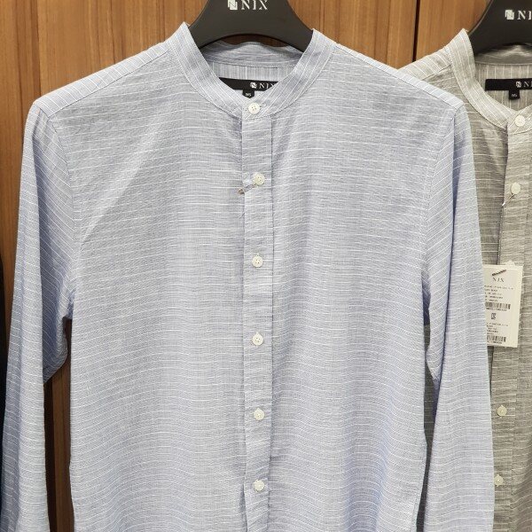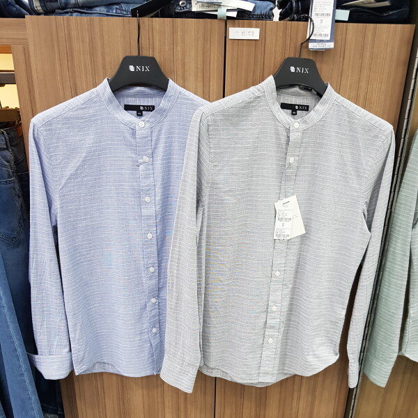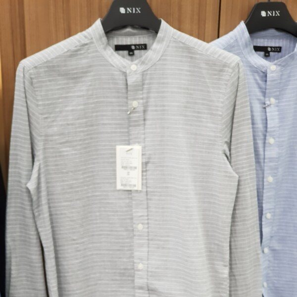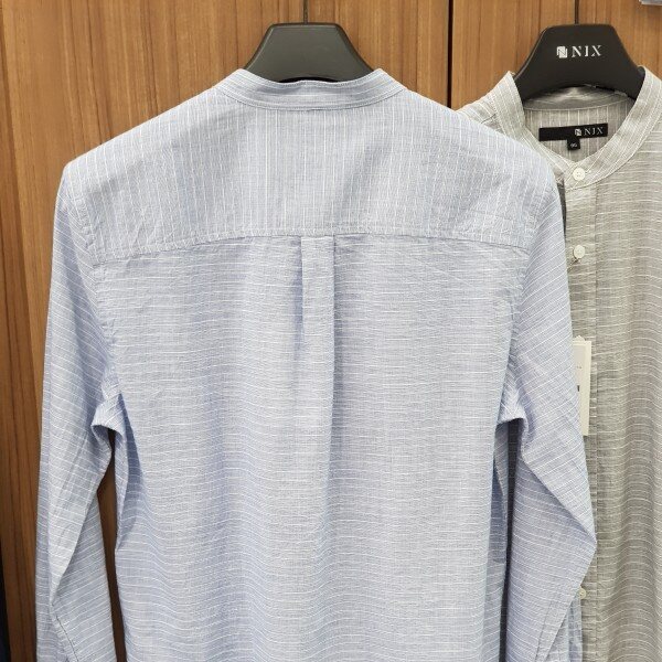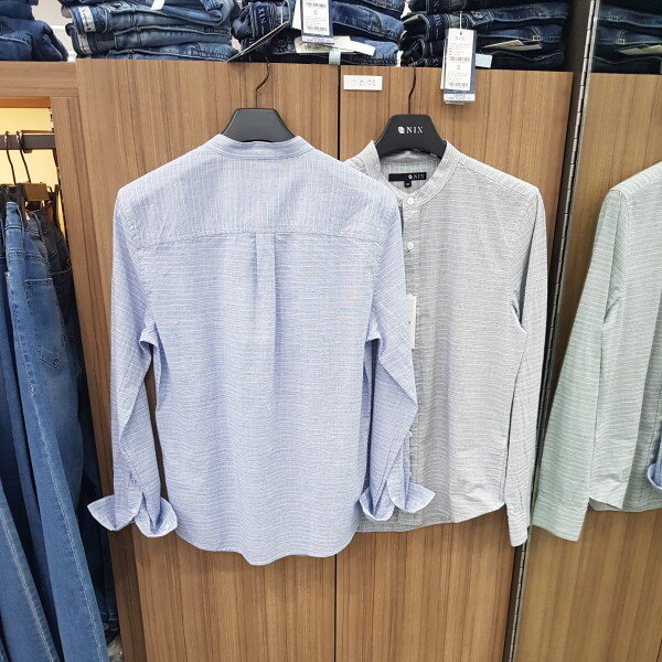 18년 신상ㆍ모던한 기본핏의 스탠에리형 잔스트라이프 셔츠로 면바지나 청바지모두 잘 어울리는 엣지있는 아이템입니다 ㆍ소재가 무더위 전까지 코디가능만 면소재로 자켓안에 이너로 세련된 코디가 가능합니다 ㆍ