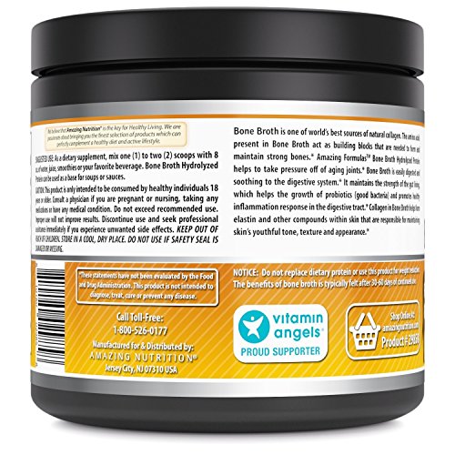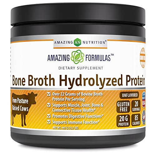 -. Title : Amazing Formulas Bone broth hydrolyzed Protein Unflavored 15.7 Oz 445 Grams - from Grass Fed Beef - High in Collagen & Gelatin