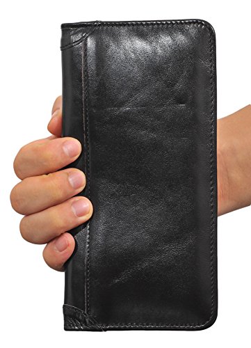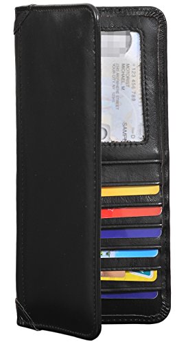 -. Feature : Genuine Leather: Made of genuine leather, and it is skilled line finish, wear-resistant and durable. / Size: Its size19*9.5*1cm. It is easy to put into your handbags, backpacks or other bags, or just hold in your hands when going outside. / Large Capacity: 12 card slots, 3 compartments for cash, and one display window, enough space for daily use. / Ultra Slim: The wallet is designed to be ultra slim, only 1cm thick. It is easy to carry and it don't take much place, easy to put into your bags.