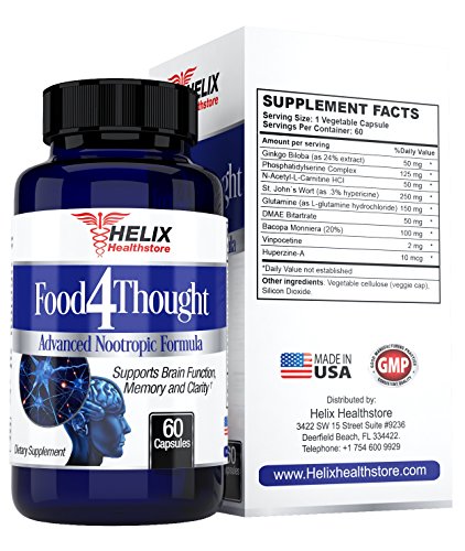 Every Capsule of FOOD4THOUGHT from HELIX HEALTHSTORE contains a powerful blend of key brain enhancing ingredients designed to safely support and protect your brain including:
