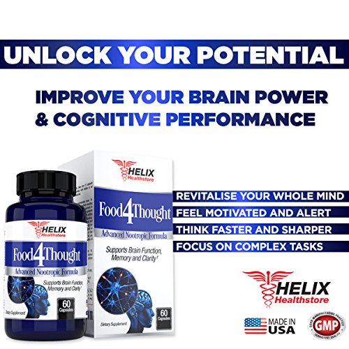 FOOD4THOUGHT- THE MOST COMPLETE MEMORY and FOCUS SUPPLEMENT available on Store today, packed with premium quality Nootropics to support a healthy brain function . Many factors can adversely affect the way your mind works including stress, anxiety, age or simply lack of sleep .Your brain is the most powerful organ in your body and requires a constant flow of nourishment in order to thrive, maintain youthful cognition and achieve peak performance.