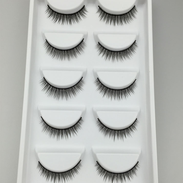 Step1:将假睫毛按每段大约5-6毫米的长度剪开,靠近眼尾的部分可以剪略长一点,眼头部分略短一点,方便操作。