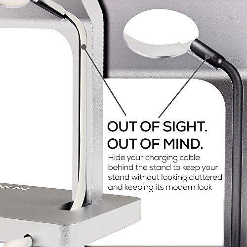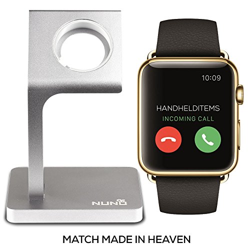 NuNu Oculus Natural Aluminum Series Apple Watch Stand The NuNu Oculus Natural Aluminum Series Apple Watch Stand is designed for simplistic style and easy functionality. The unique design assimilates the apple watch and phone in one single sleek product to provide the best of efficacy. Its clean visual design with a raised structure enables a clear view of your apple watch presentation. Our thoughtfully designed features allow all operations on the apple watch to be performed unimpeded especially during charging, built with a silicone circle to protect your apple watch charger perfectly. Carefully designed rubber bottom supports and prevents the device from slipping around once placed on a table surface.