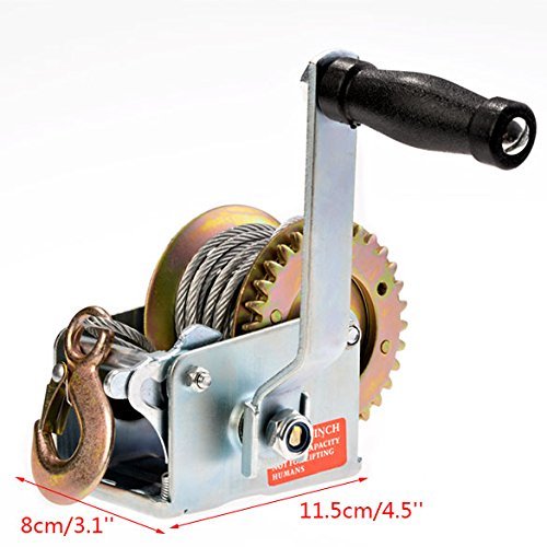 --Heavy duty steel construction, can support up to 600 lbs., Gear Ration 3.1 : 1 , Can be used to lift heavy objects, drag boats, or volleyball net