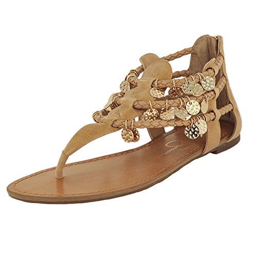 Studio : Jessica Simpson Footwear Publisher : Jessica Simpson Footwear Binding : Shoes Product Description Leather upper with braided straps at ankle. Coin charms add visual appeal. Man-made lining. Lightly cushioned man-made footbed. Man-made sole. Imported. Imported. 0