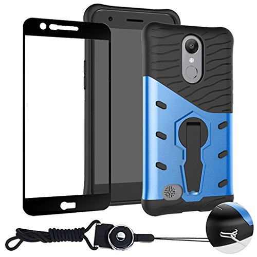 LG K20 V Case,LG K20 Plus / LG K10 2017 / LG VS501 / LG Grace / LG Harmony Case , BestAlice Hybrid Shockproof Defender 360 Rotatiing Stand Armor Case Cover & Tempered Glass Film & Neck Lanyard , Blue