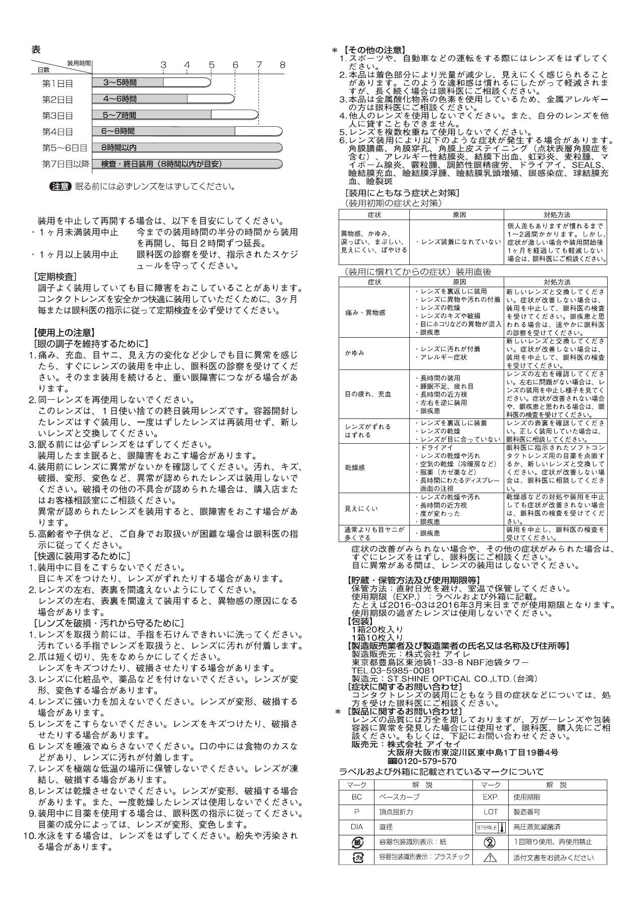 ● If you feel any abnormality, stop wearing and please take the examination of the ophthalmologist immediately.