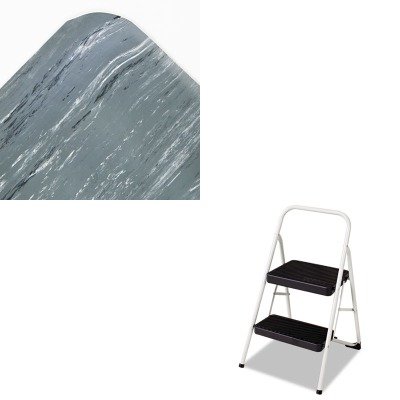 -. Title : KITCSC11135CLGG1CWNCU3660GY - Value Kit - French Gray Vinyl Spiffy Cushion Step Mat, 3' x 5' (CWNCU3660GY) and Cosco 2-Step Folding Steel Step Stool (CSC11135CLGG1)