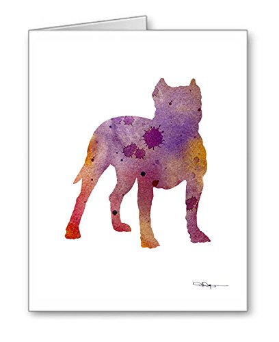 -. Feature : "Pit Bull" artwork by watercolor artist DJ Rogers. / Note card size is 4.25 x 5.5 inches / Matching white envelopes included. / Note cards are blank inside for your personal message. / Suitable for framing.