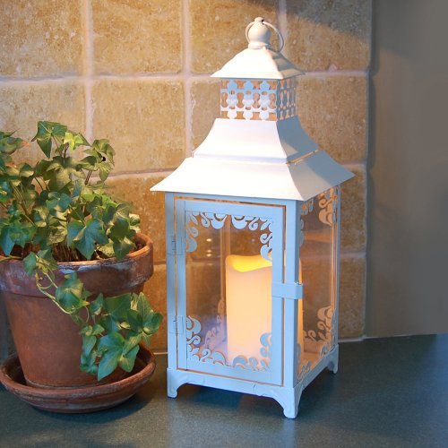 -. Title : LumaBase 90301 Swirl Detail Metal Lantern with LED Candle, Warm White