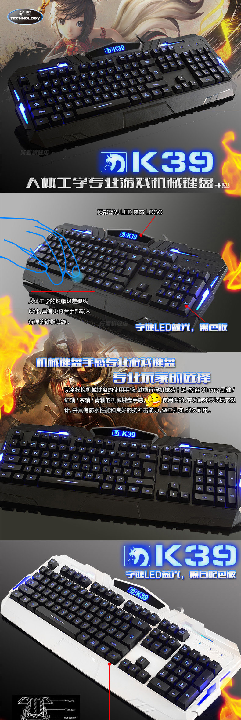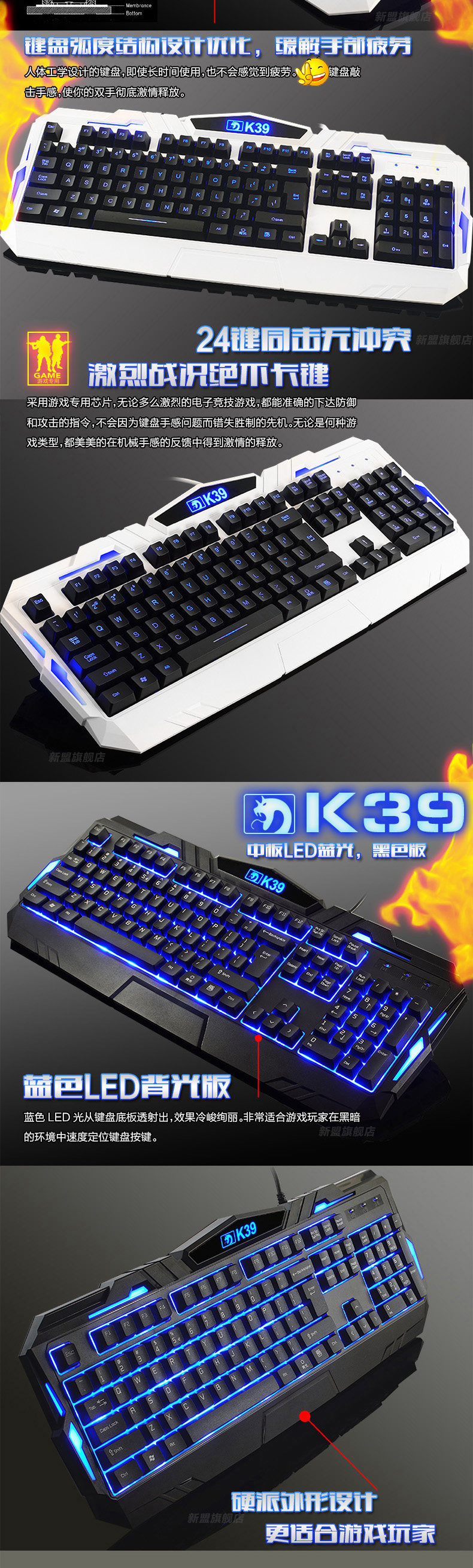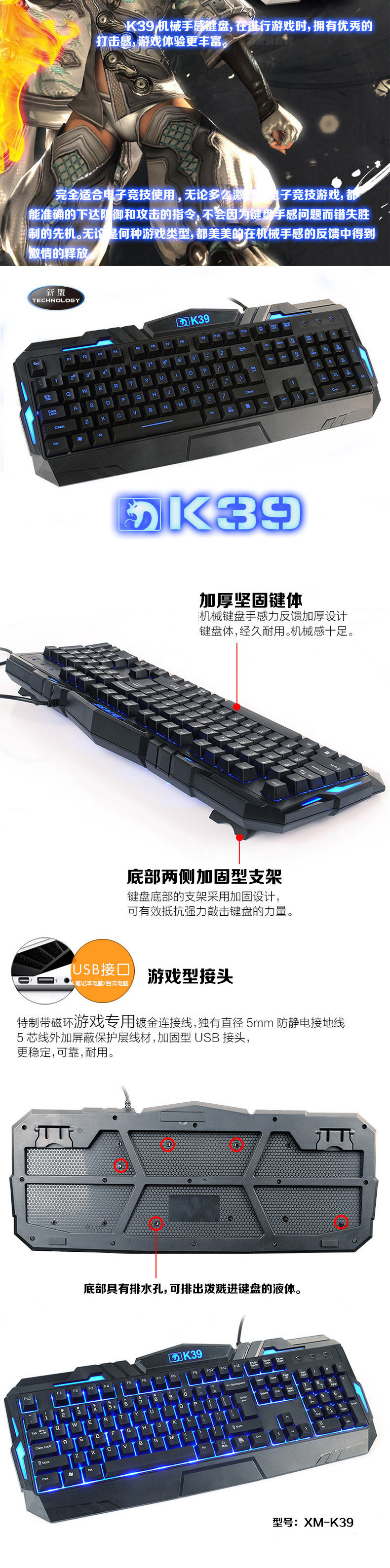 新盟背光键鼠套装 游戏发光键盘 笔记本电脑有线键盘鼠标套装 lol
