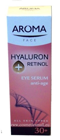 Binding : Misc. Product Description New Aroma Hyaluron Retinol eye serum combines two powerful active ingredients - Hyaluronic acid and Retinol. It provides complete care for the delicate zone around the eyes and protects against fine and deep wrinkles, eye bags and dark circles. The serum also contains caffeine, which immediately energizes and revitalizes puffy eyelids, refreshes and tightens the sensitive area around the eyes.