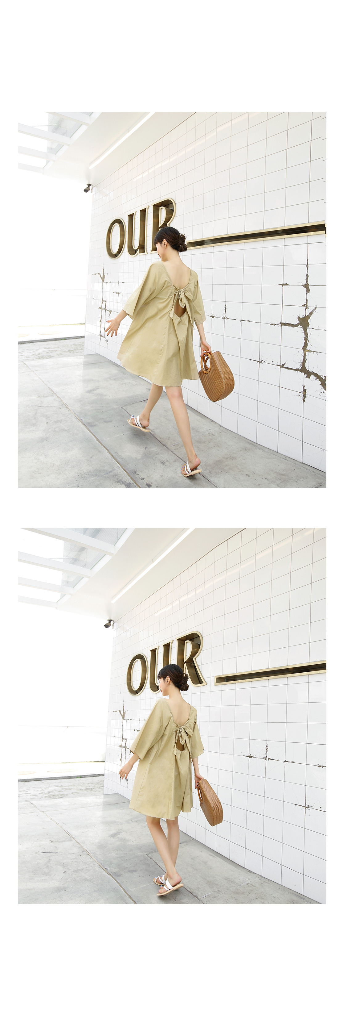 뒷리본 디테일로 사랑스러운 무드를 물씬 풍기는