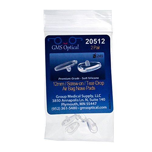 GMS Optical« Soft Silicone Tear Drop Air Bag Nose Pads Sold in Pairs Push in and Screw in Size S 12mm,13mm,14mm (2 PAIR, 12 MM SCREW IN)