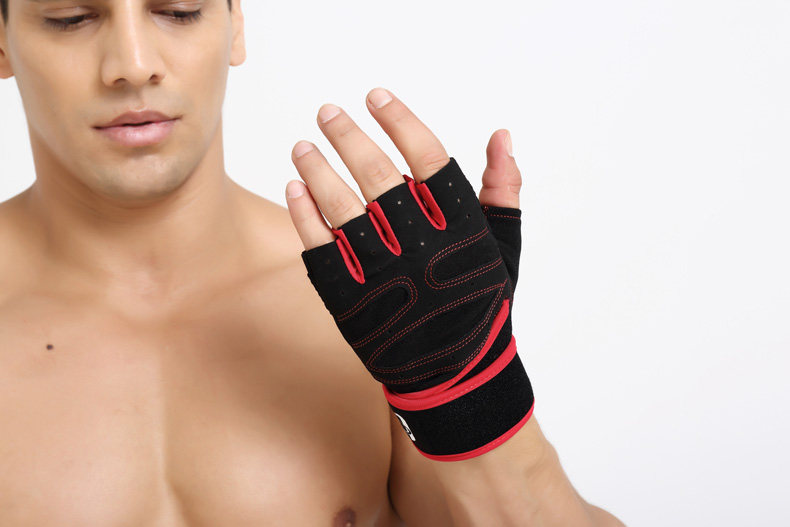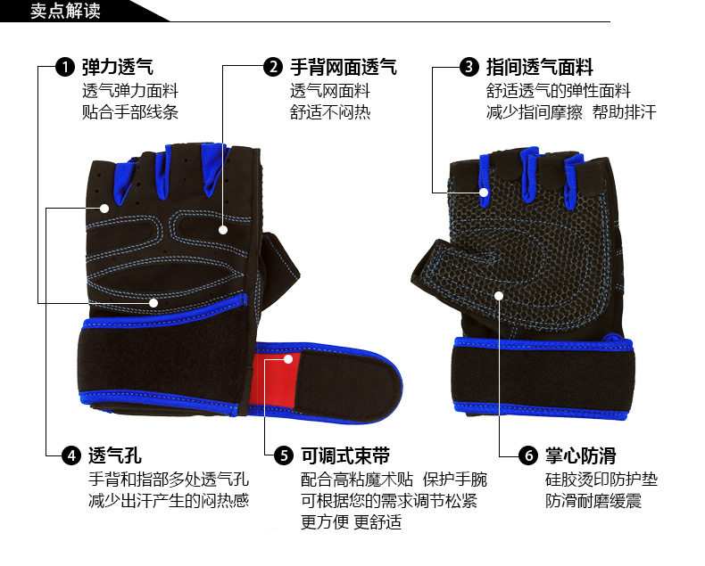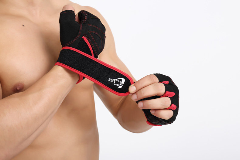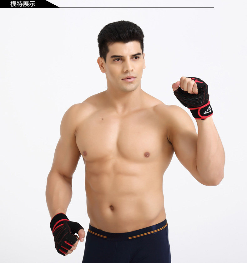 健身手套男士透气运动手套女健身房哑铃器械训练半指护腕防滑 ?