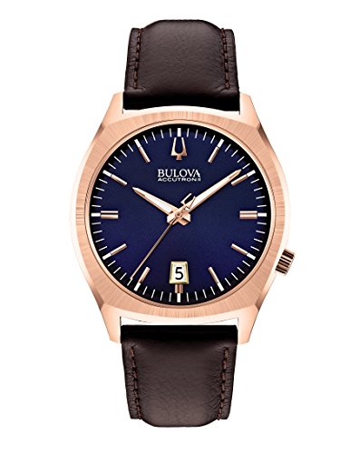 -. Title : Bulova 97B133 Mens BA11 Dark Brown Leather Strap Watch
