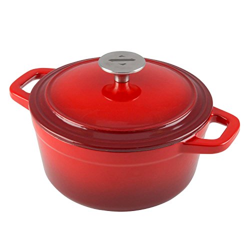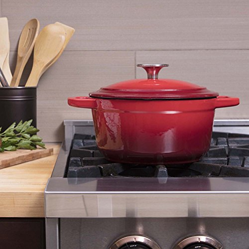 Perfect for all types of cooking, our enameled Cast Iron Dutch Oven will cook your favorite dish with ease, and can be used in the oven or over a campfire. Our enameled Cast Iron is highly efficient at retaining and distributing heat. This ensures thorough, even cooking throughout your entire dish which is sure to please your family or party guests.