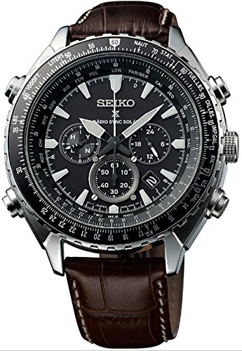 Men''s?SEIKO PROSPEX watch. Leather strap. Stainless steel case. Automatic Solar movement with radio signal reception.