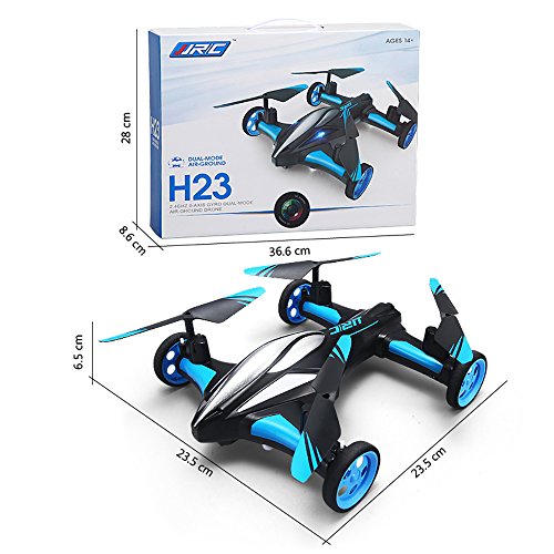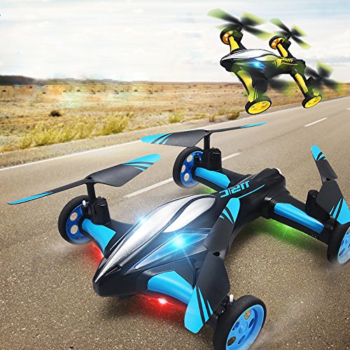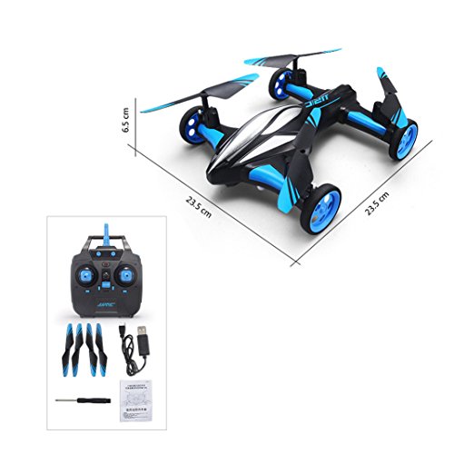 Latest advanced breakthrough technology: hybrid drone car that can be both flown in the air like a traditional drone and driven on the ground like a standard RC car. Seamlessly transition between flying air mode and land driving mode. Drone and car have been integrated into one! Fly and Drive! If you want both a RC drone and a RC car, this amazing goods is your best choice. Super coooool.