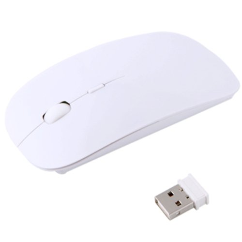 HDE Sleek Ergonomic Curved Wireless 2.4 GHz Optical Slim Mouse with DPI Switch (White)
