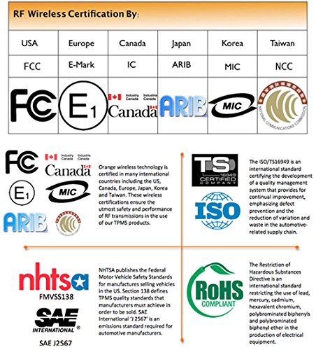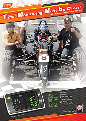 Studio : Orange Electronics Publisher : Orange Electronics Product Description Model Orange P409S Battery working life 5-7 years Storage temperature -40oC to 125oC Operating temperature -30oC to 120oC Operating humidity MAX 95% Operating frequency 433.92MHz Tyre pressure monitoring range 0~87 psi Pressure monitoring accuracy ± 1psi Temperature reading accuracy ± 4oC Transmission Power MAX 5 dBm Sensor battery specification 3.0V Lithium battery weight 32g ±3 g Receiver specification Operating voltage 12V Operating current < 200mA Storage temperature -30oC to 105oC Operating temperature -30oC to 85oC