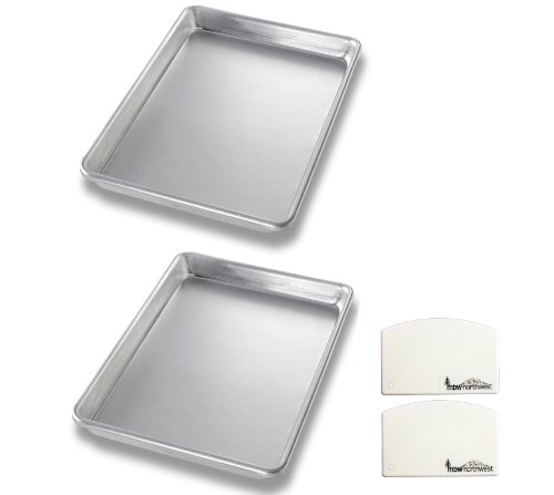 - Title : Set of 2- Aluminum Baking Sheet Pan - 9.5" x 13" Quarter Size - High Quality, Commercial Grade - NSF Approved - Comes with 2 Custom Dough Scrapers