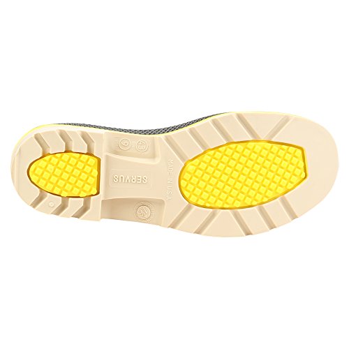 Studio : Sperian Protection Group Publisher : Sperian Protection Group Binding : Tools Home Improvement Product Description Competitors boots cant add up to all the advantages the Servus PRO knee boot offers. Built with TDT innovations and quality standards, this boot also features an advanced sole and heel tread, prohibiting hydroplaning and maximizing traction. Slip-resistant centersole treads are grooved and angled for maximum traction. Advanced outsole pattern squeezes fluids to outer channels expelling them from underfoot, prohibiting hydroplaning and providing better contact between the outsole and floor. Dual outsole design and dual compounding contributes to enhanced slip resistance in wet and oily/wet environments. Available in gray, yellow and beige color. Comes in size-10. 0