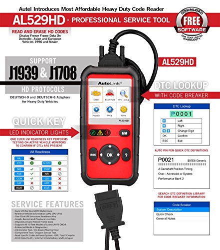 -. Title : Autel AutoLink AL529HD Heavy Duty OBDII Code Reader for Check Engine Light,Support Read and Clear Error Codes Query DTCs