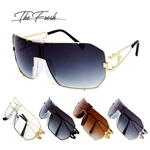 Product Description Modern single shield-shield silhouette this is available in several colors including eye-catching gradient color lenses. These wraparound shield frames offer a fresh modern look to this seasons collection. Made with a metal based frame, metal hinges and UV400 polycarbonate lens. Available in five different lenses colors. ? Specification ?