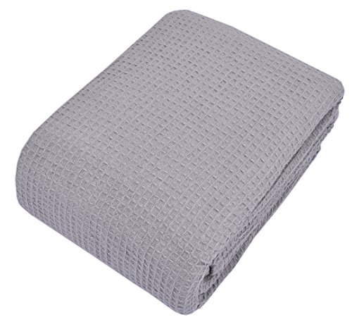 TreeWool, 100% Soft Premium Cotton Thermal Blanket Light Weight Easy Care Soft Comfortable and Warm (King Size - 90" x 108", Waffle Weave, Silver Grey)