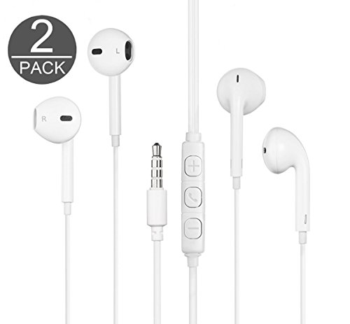DG Electronics Wired 3.5MM Earphone Earbuds Headphones + 1 EVA Carry Case w/ Remote and Microphone for Workout Sports Fitness Sweat Proof (White X2)