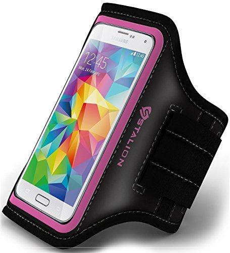 EASILY ADJUST TO SUIT YOUR ARM Sweat-proof, water-resistant neoprene smartphone running armband has a soft, stretchy Velcro closure and adjusts from 8.5 to 15" to fit everyone! Need extra length/circumference for larger arms!? Stalion has you covered; purchase our sports armband accessory "Armband Extender" for an additional 6.5" in length. See ASIN: B016LDNI9O or check out our Special Offers and Product Promotions link below for product details