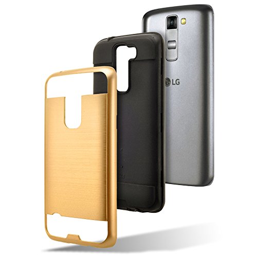 LG Tribute 5 Case, 2-Piece Style Hybrid Shockproof Hard Case Cover + Circle(TM) Stylus Touch Screen Pen And Screen Protector Gold