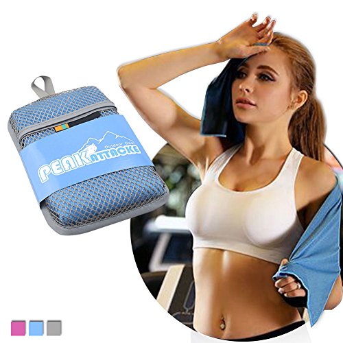 PeakAttacke Outdoor Fast Drying Microfiber sports Towel Easy to Carry and Ultra Light for Camping, Travel, Running, Yoga, Fitness, Golf 2 Pack
