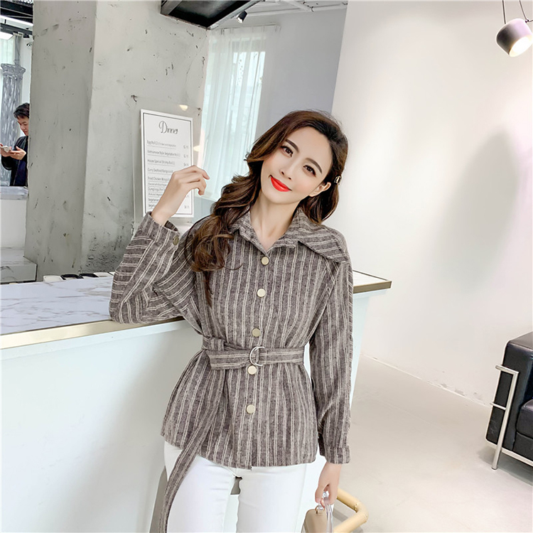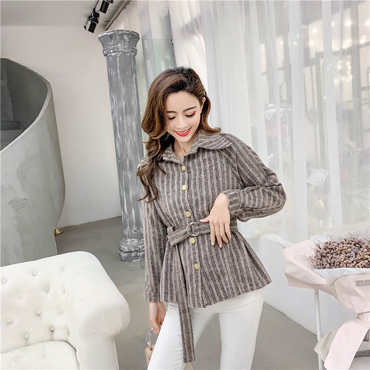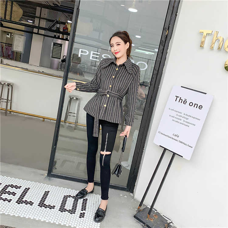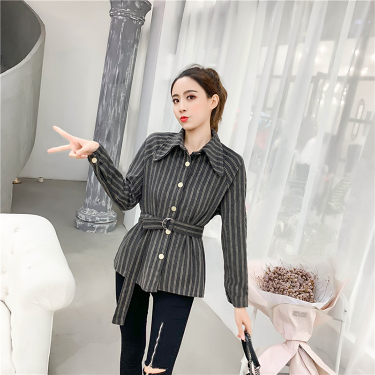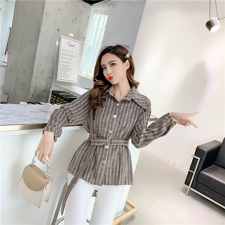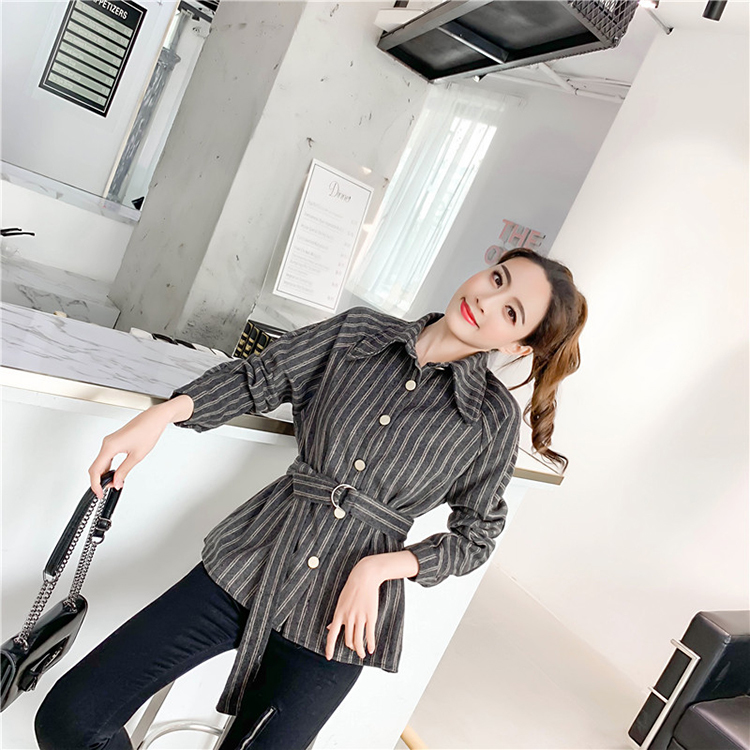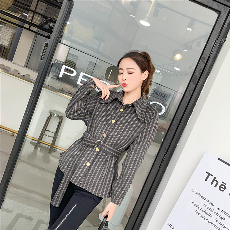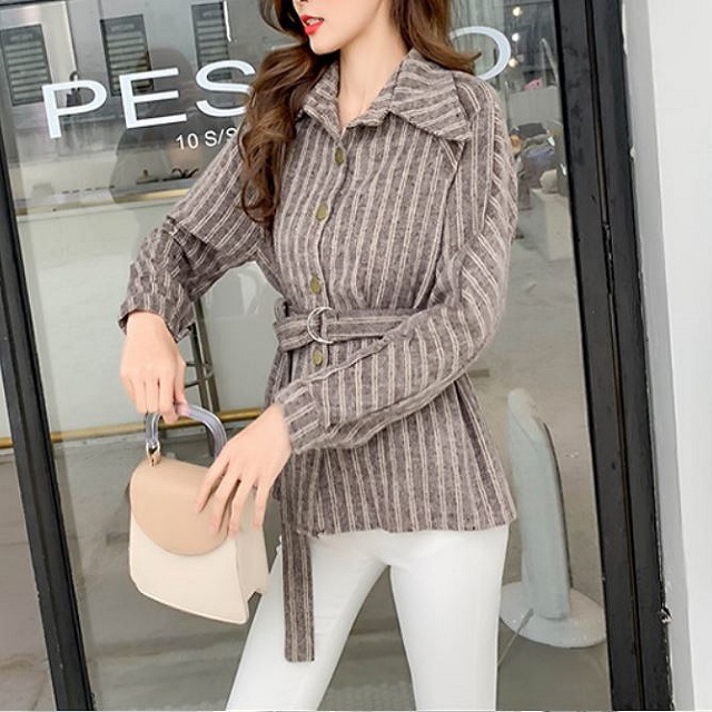 程よくフィットする女性らしいシルエットがフェミニンなストライプシャツ♪