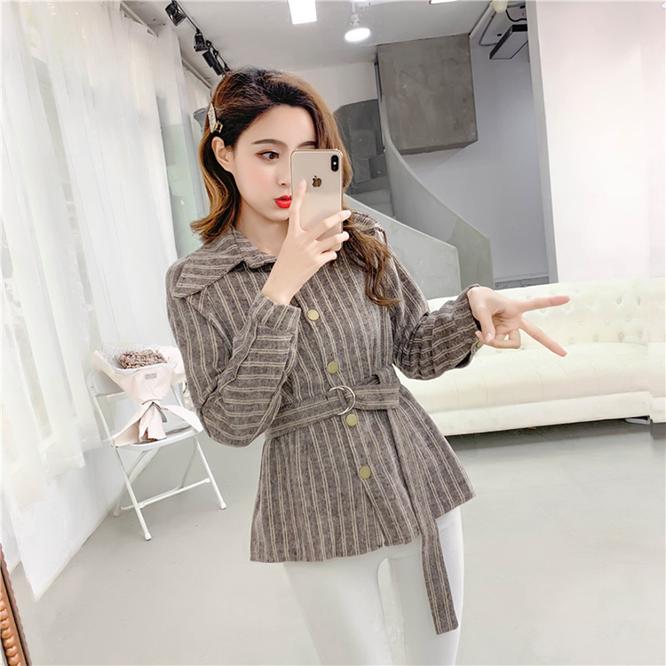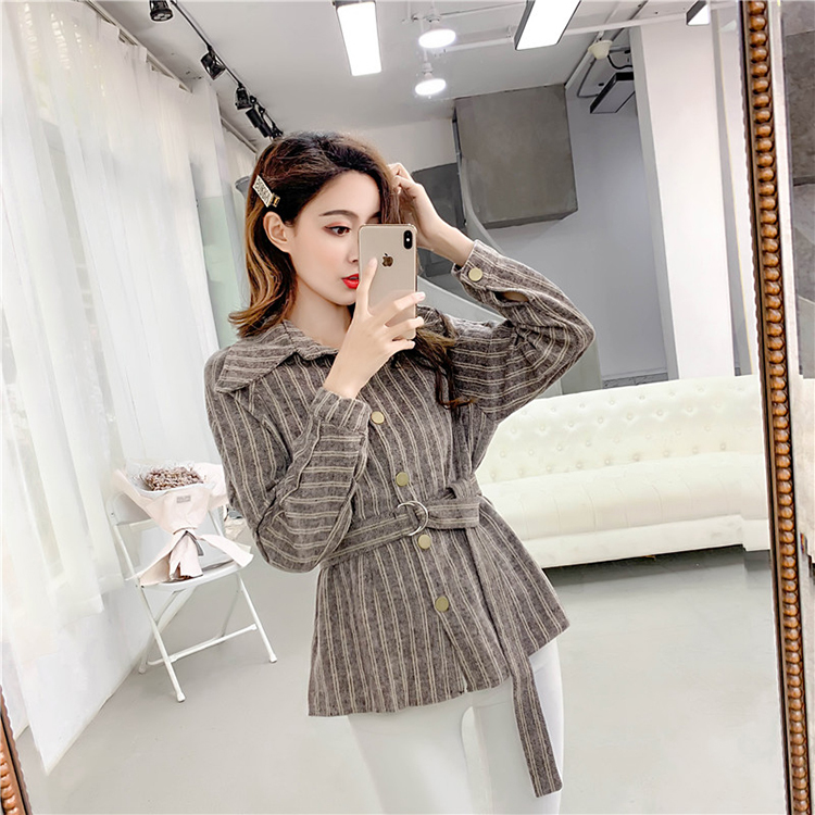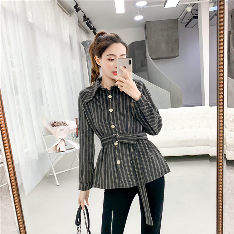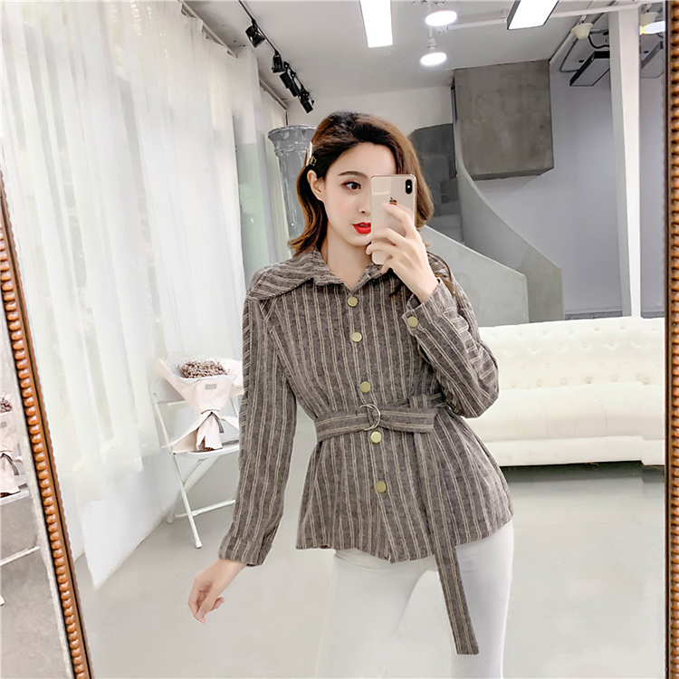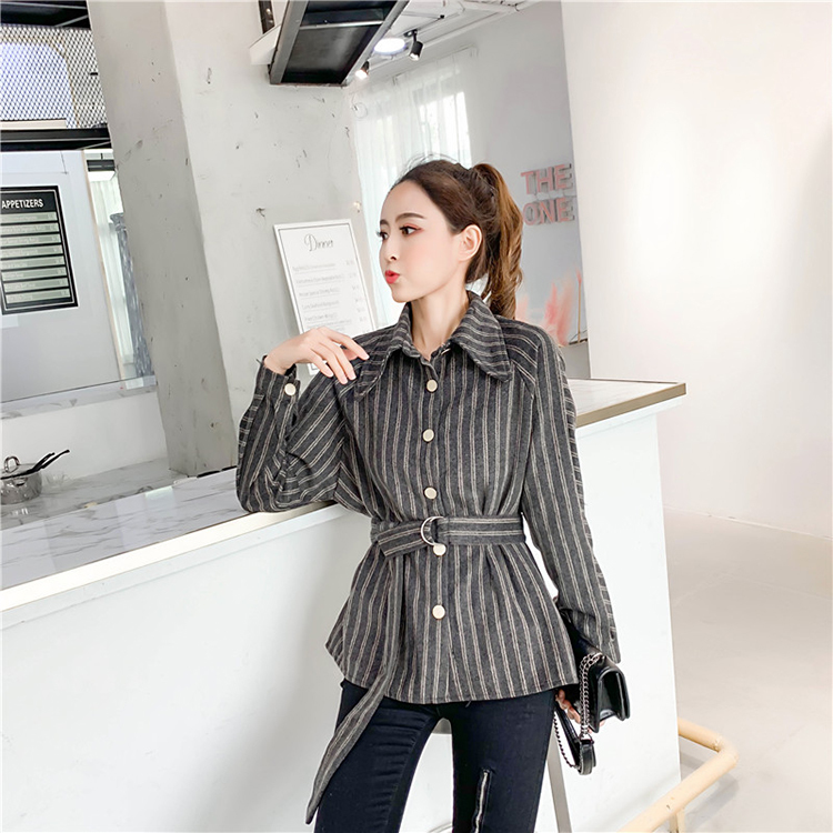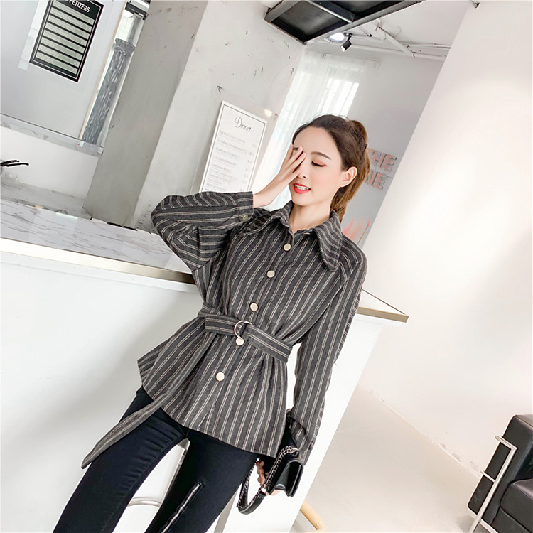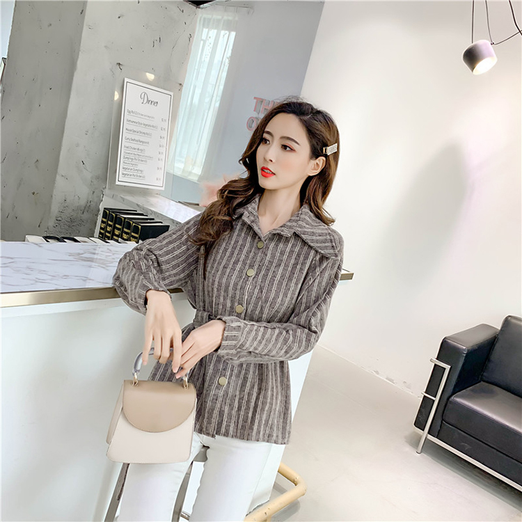 程よくフィットする女性らしいシルエットがフェミニンなストライプシャツ♪